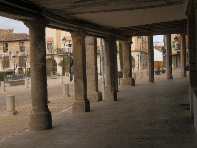está recorrida de soportales y frente a ellos está el Palacio de los Buendía,